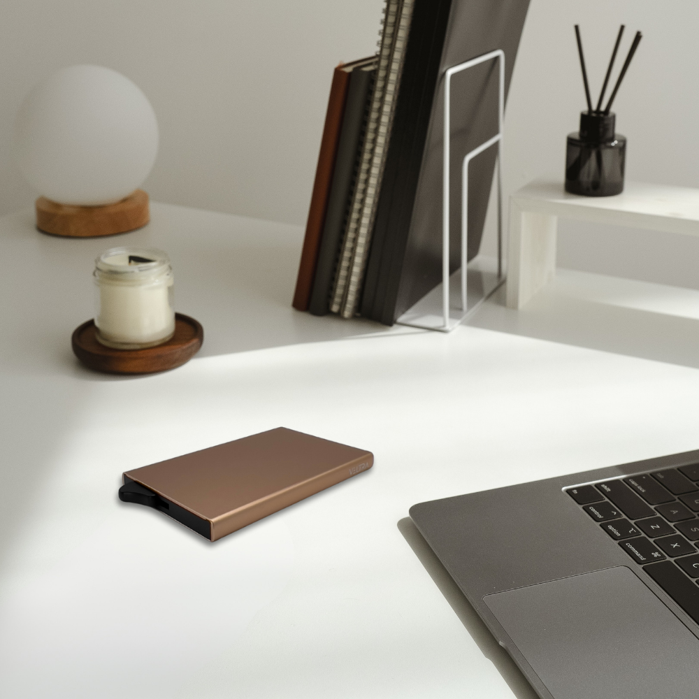 De Veltra RFID uitschuifbare pasjeshouder is de perfecte mix van stijl veiligheid en gebruiksgemak. Deze minimalistische portemonnee is gemaakt van hoogwaardig aluminium en beschermt je kaarten tegen skimmen dankzij de ingebouwde RFID-technologie. Met één soepele klik heb je direct toegang tot je pasjes, die stevig op hun plaats blijven dankzij het slimme veermechanisme. De compacte houder bied ruimte voor 1 tot 7 kaarten en past moeiteloos in elke zak. Verkrijgbaar in vier stijlvolle kleuren en geleverd in een luxe verpakking - ideaal als cadeau voor hem of haar. Kies voor de Veltra pasjeshouder en ervaar het gemak van een veilige, georganiseerde en elegante manier om je pasjes bij je te dragen.
